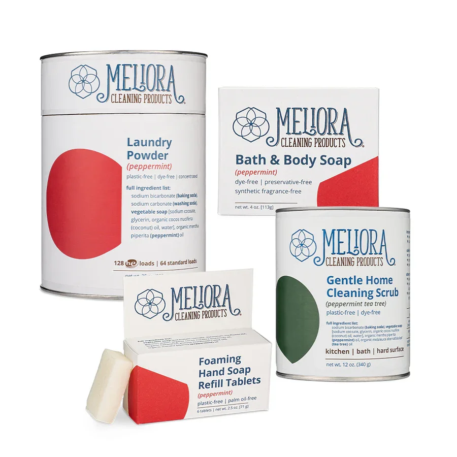 Shampoo, body wash, and conditioner refills, soap bars, plastic-free bamboo toilet paper, wooden handle toothbrushes, toothpaste, and more.